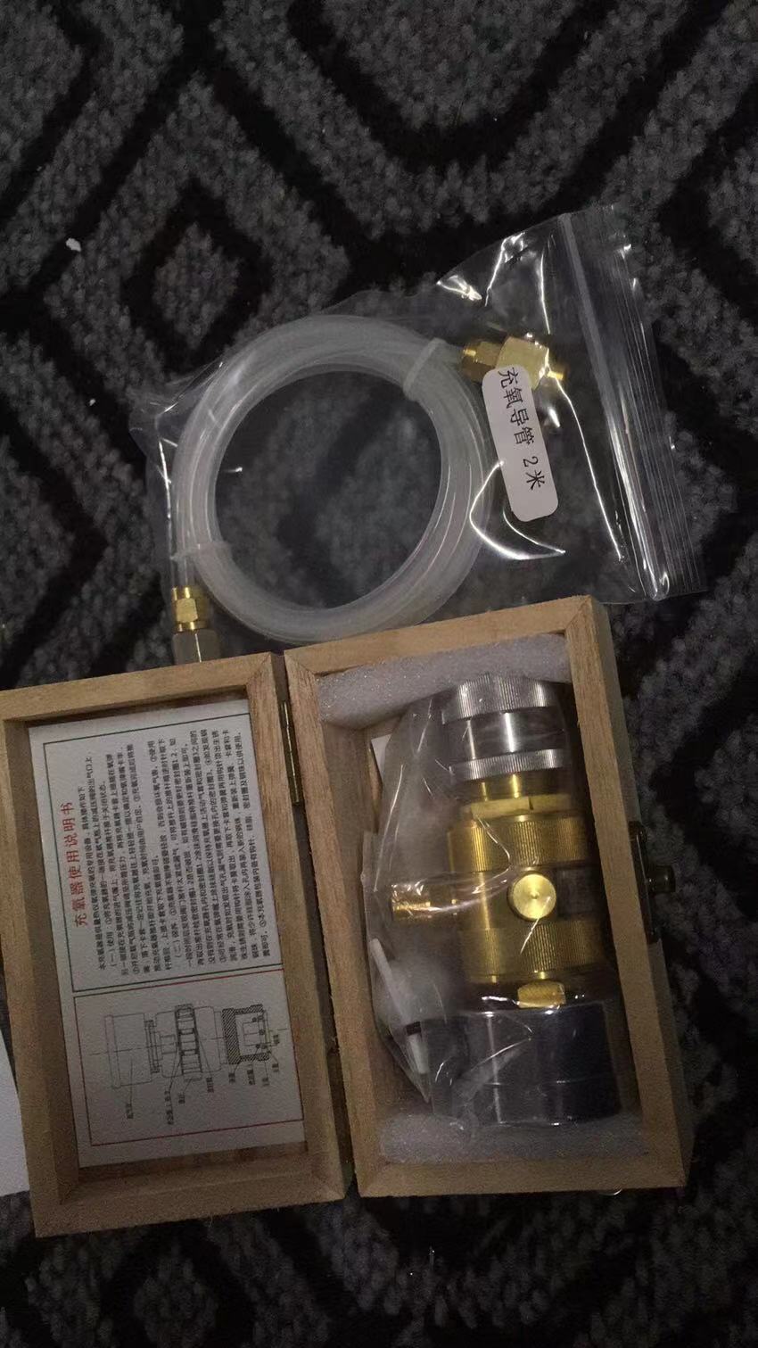 This instrument has a novel and compact structure, is beautiful and generous, is easy to use, and is suitable for oxygenation of oxygen bomb cartridges.